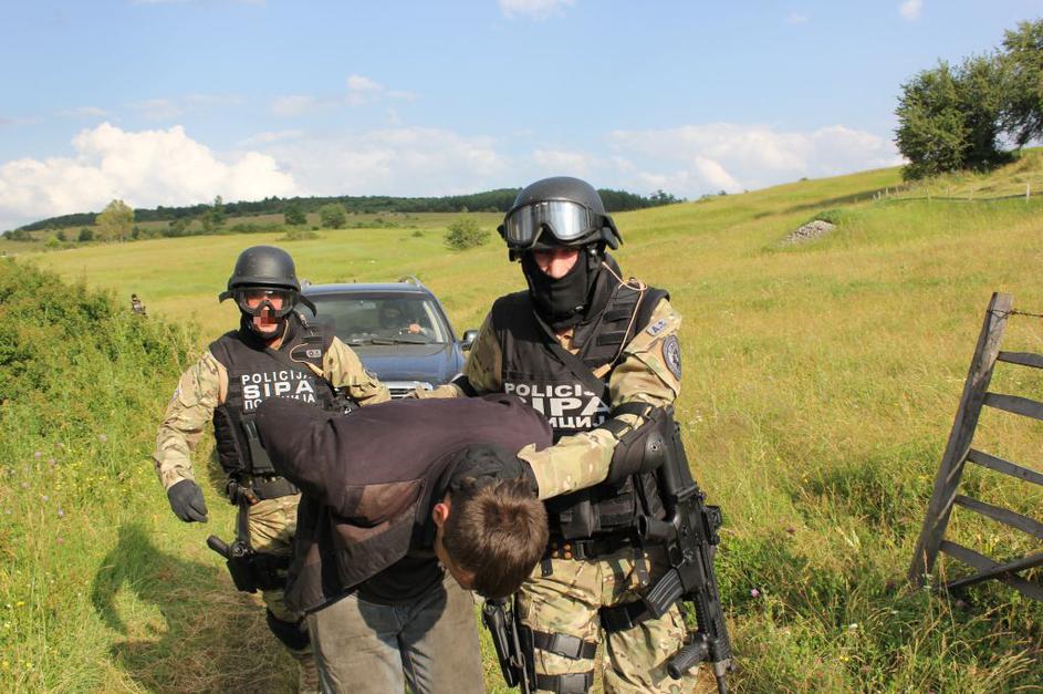 Aretacija BIH SIPA na travniku v okolici Sarajeva aretirala domnevne tihotapce ukradenih vozil. SIPA Aretacija BIH