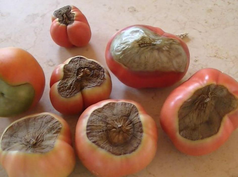 Pomanjkanje kalcija pri paradižnikuPomanjkanje kalcija pa se pri paradižniku kaže v gnilobi na dnu ploda. Če ga primanjkuje, se celične stene zgrudijo in sesedejo, plod pa posledično propada, da opazimo črno nekrotično tkivo. Klub Gaia
