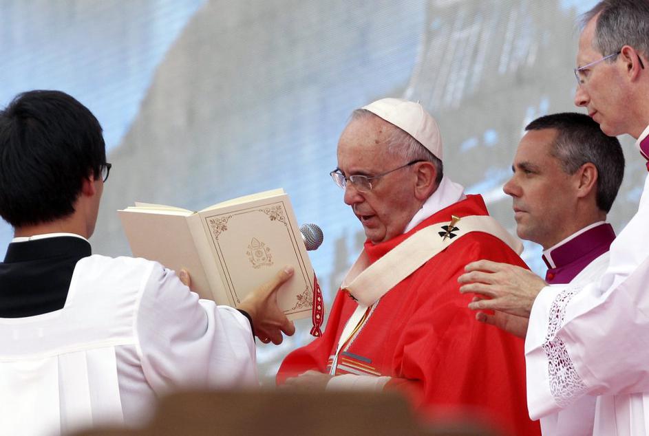 Papež Frančišek, obisk Južna KorejaPapež je pri maši beatificiral 124 korejskih mučenikov, ki so bili v 18. in 19. stoletju ubiti, ker so se spreobrnili v krščansko vero. EPA