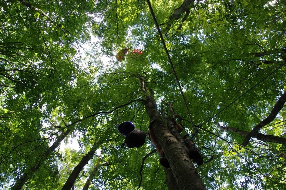 Po preletu nad Kobaridom zaključil na drevesu