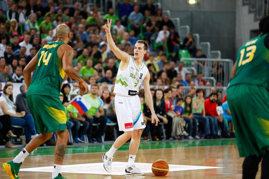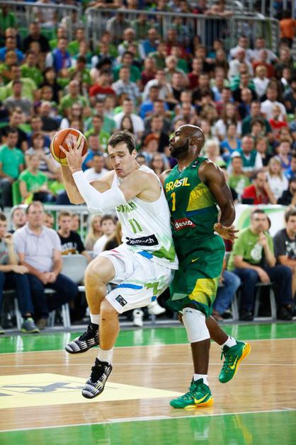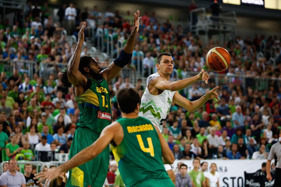 Slovenski košarkarji so se na drugi tekmi v Stožicah pomerili z Brazilijo ...