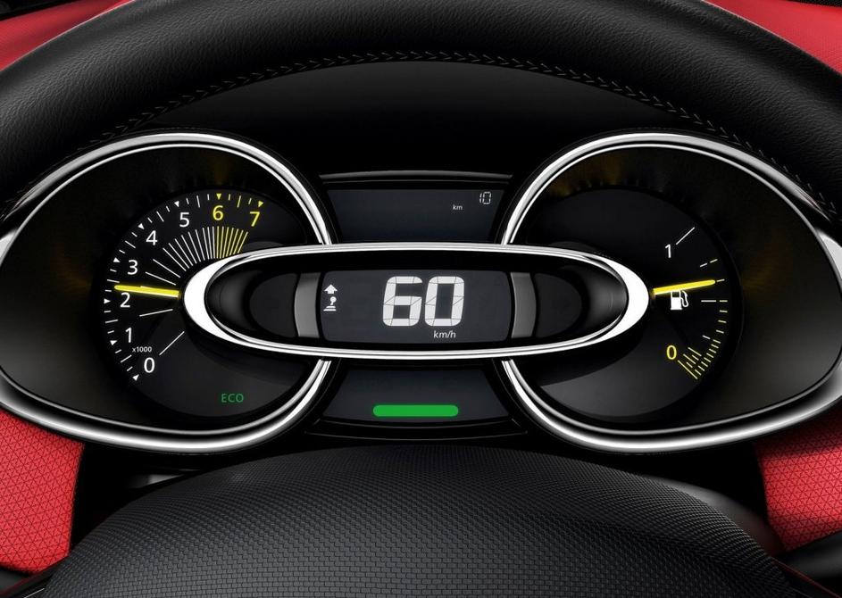 MerilnikErgonomija: proizvajalci marsikdaj zaradi želje po "šik" izdelkih pozabijo na preglednost merilnikov in gumbov. Manj je v tem primeru več, velike številke so dobrodošle. Renault