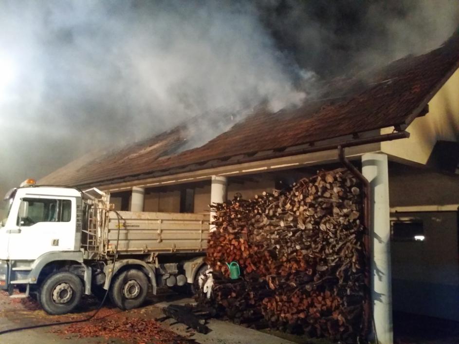 Požar hleva v Mostah