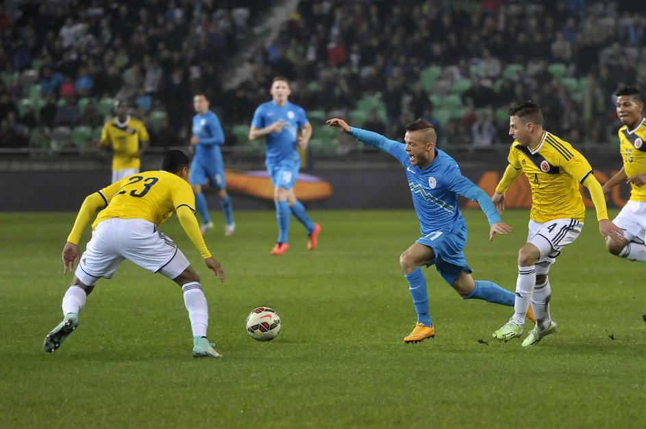 Utrinki s tekme med Slovenijo in Kolumbijo v Stožicah.