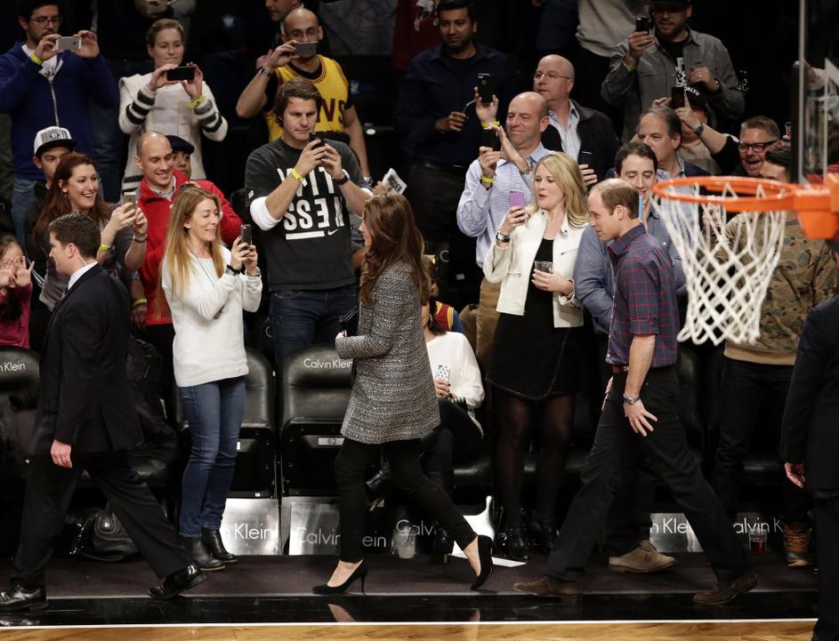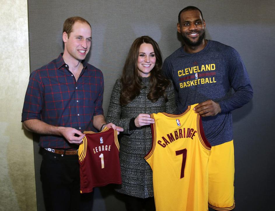 Kate in William sta ogled tekme v Brooklynu izkoristila tudi za poziranje z enim najboljših košarkarjev vseh časov - LeBronom Jamesom.