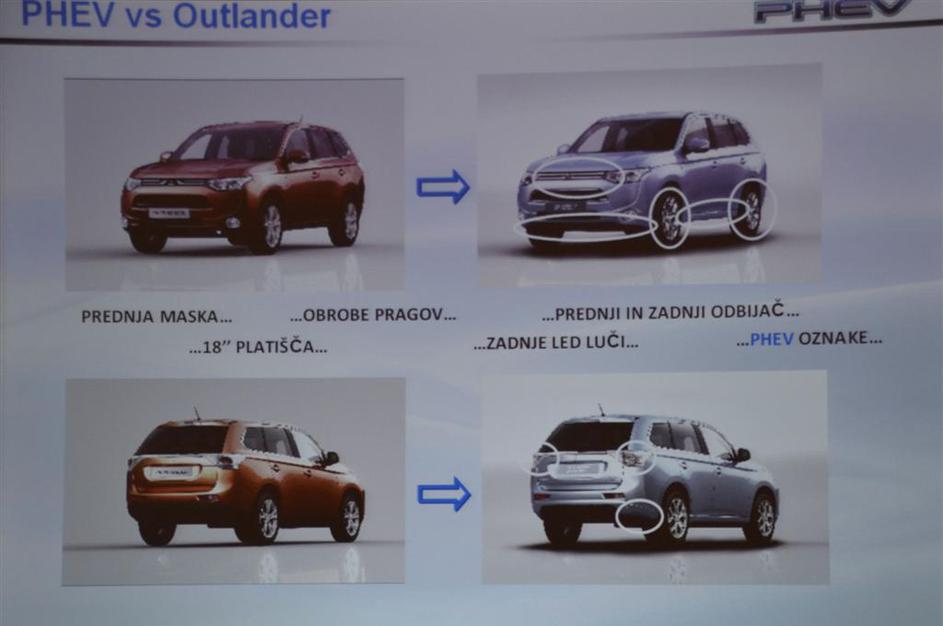 V primerjavi z klasičnim outlanderjem so pri PHEV minimalno spremenili masko, obrobe pragov, prednji in zadnji odbijač, zadnje LED luči, še najbolj opazen je zaradi oznak PHEV na karoseriji.