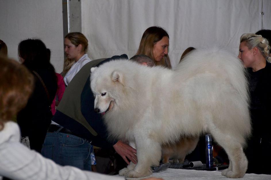 Samojed čaka na nastop.