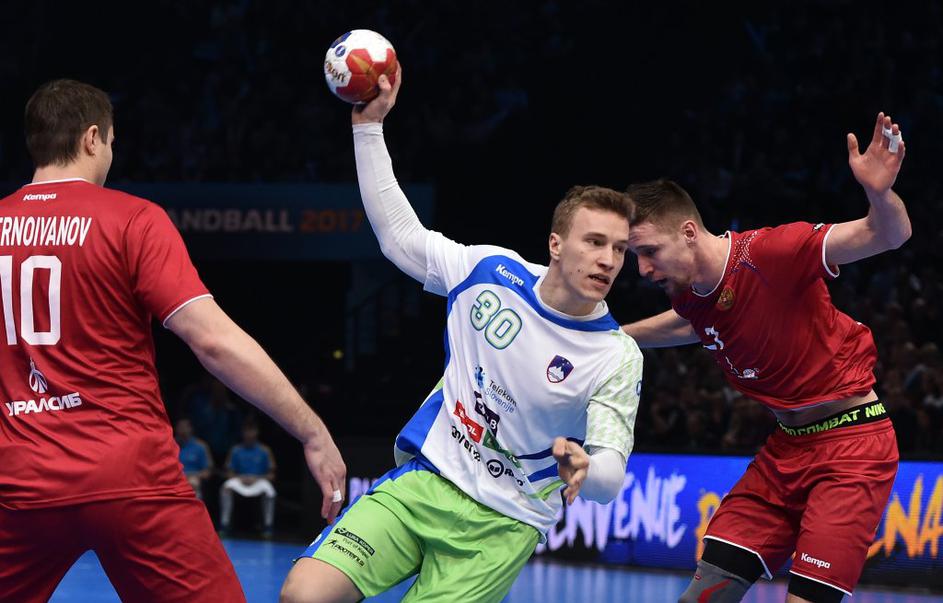 (Rusija - Slovenija) Ruski rokometaši so se zatekali h grobi igri, kar je imelo za posledico številne izključitve. Skupaj so počivali 14 minut, Slovenci le 4.