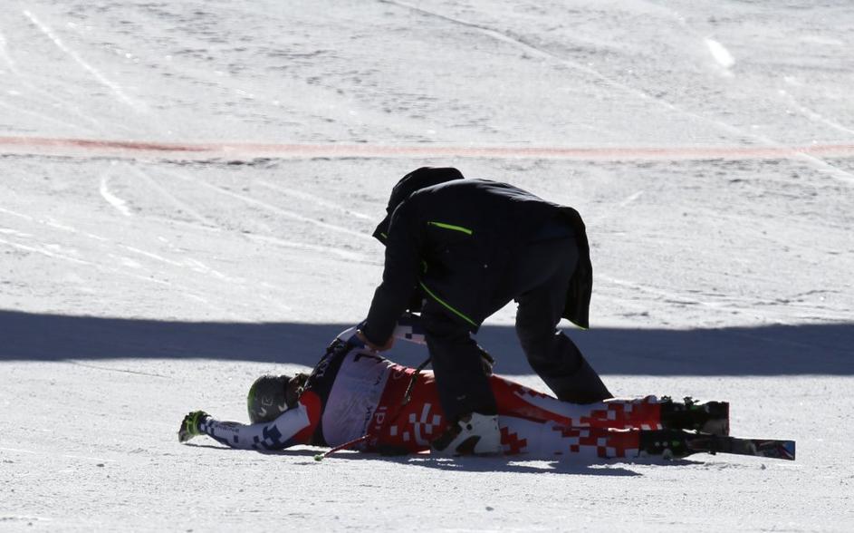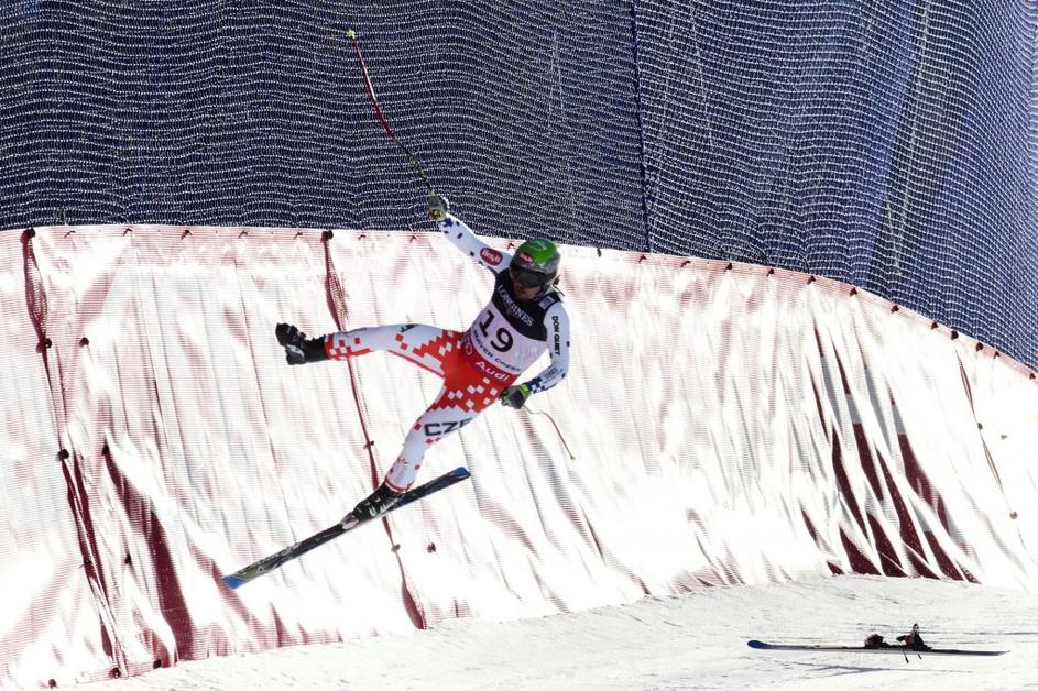 Tekmo je za nekaj minut prekinil hud padec nesrečnega Čeha, ki je bil zelo hitro na poti.