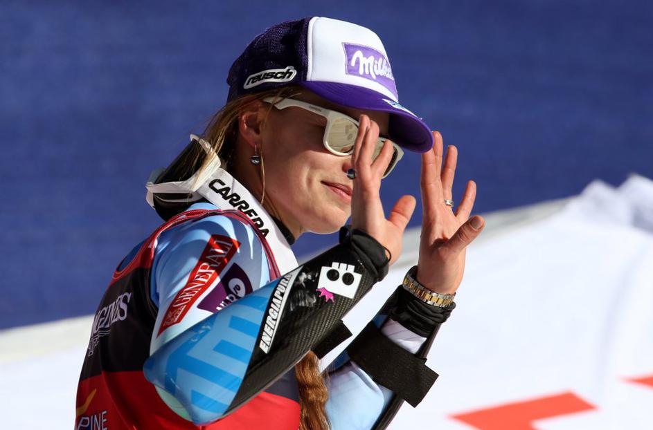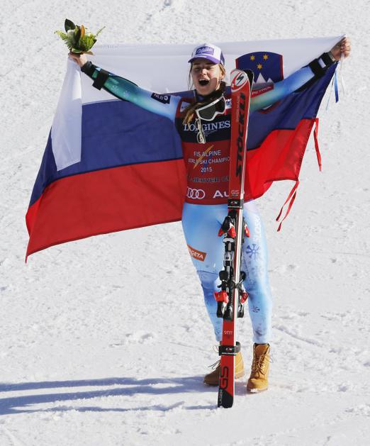 Tina Maze se je razveselila tretje kolajne na tem SP ...