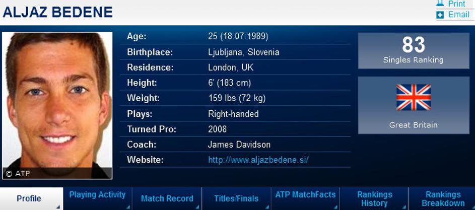 Bedene je trenutno uvrščen na 83. mesto lestvice ATP.