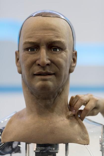 Frubber robotRobot z imeno Han je prekrit s posebno ovojem t.i- "Frubber" (sestavljenka iz angleških besed za mesno gumo), ki močno spominja na dejansko človeško kožo. EPA