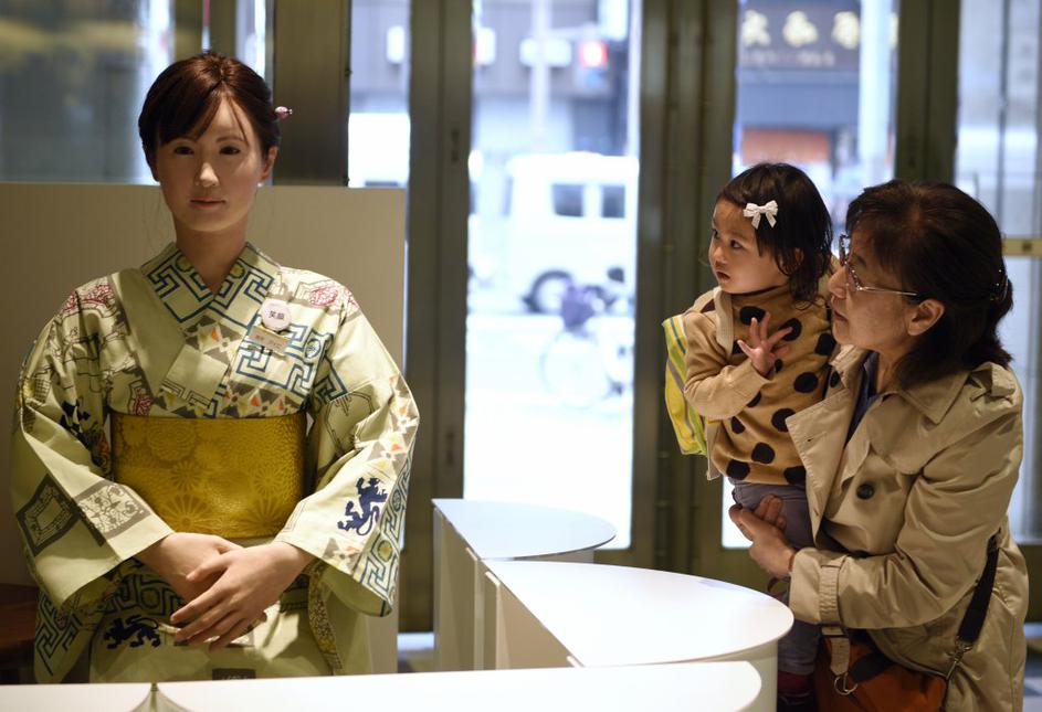 Japonski robotHomanoidi roboti, kakršen je Han, bodo lahko v prihodnosti zamenjali ljudi na nekaterih delovnih položajih. Tako se je že zgodilo v tokijski veleblagovnici Mitsukoshi. EPA
