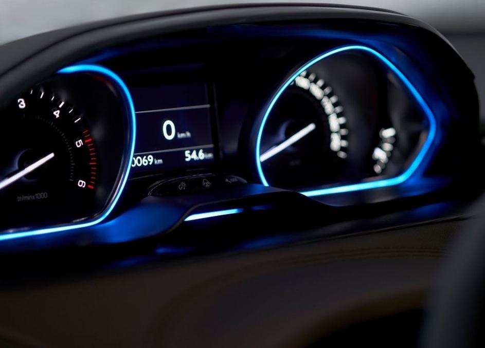 Peugeot 2008Lastnik si lahko omisli različne barvne kombinacije notranjosti, pri čemer so obloge armaturne plošče deloma potiskane z ličnimi vzorci. Peugeot