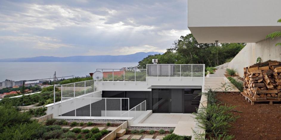 Ravna zelena streha poskrbi, da se objekt navidezno zlije z brežino, v katero je postavljen.