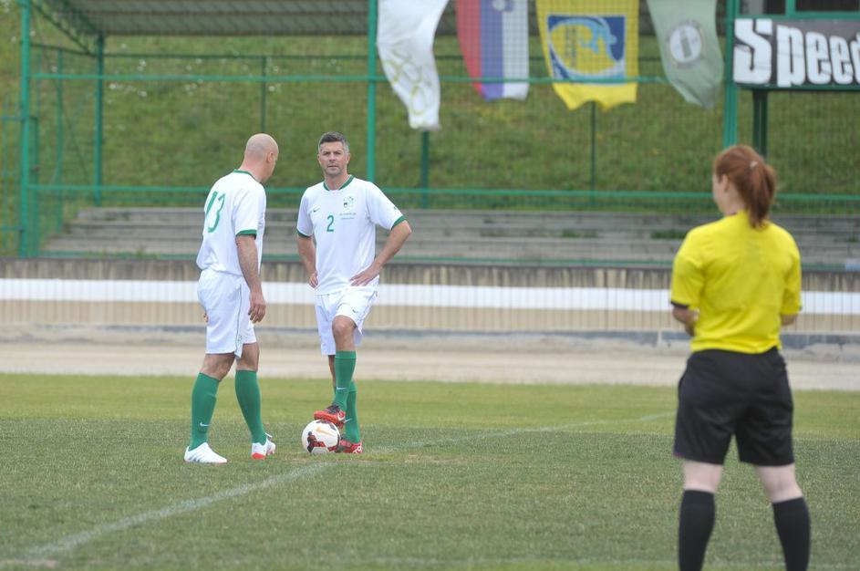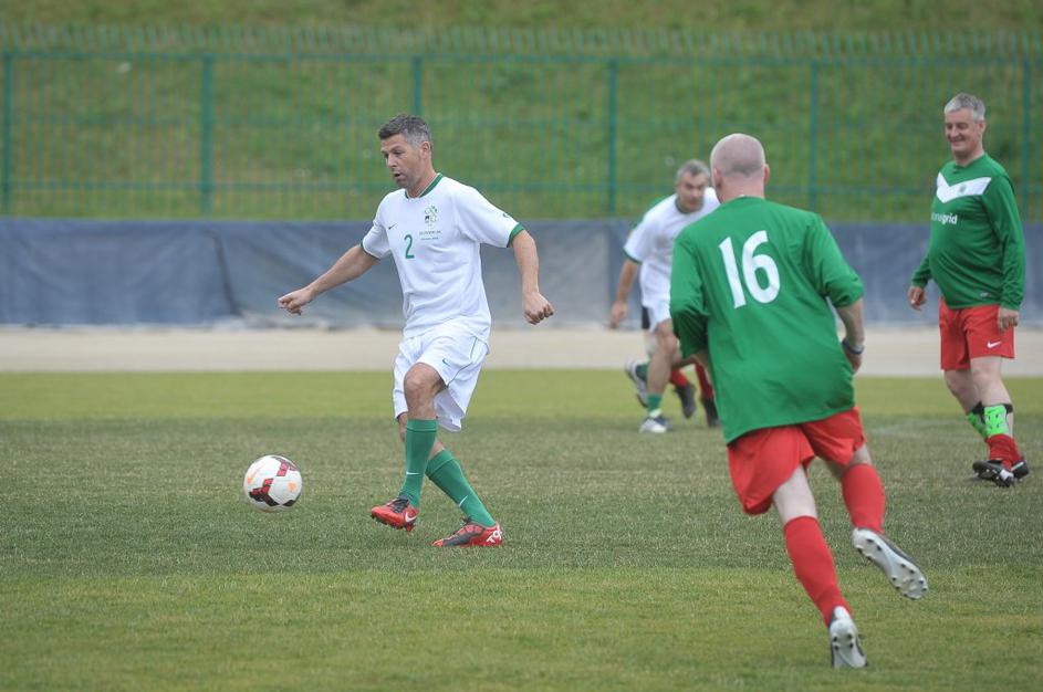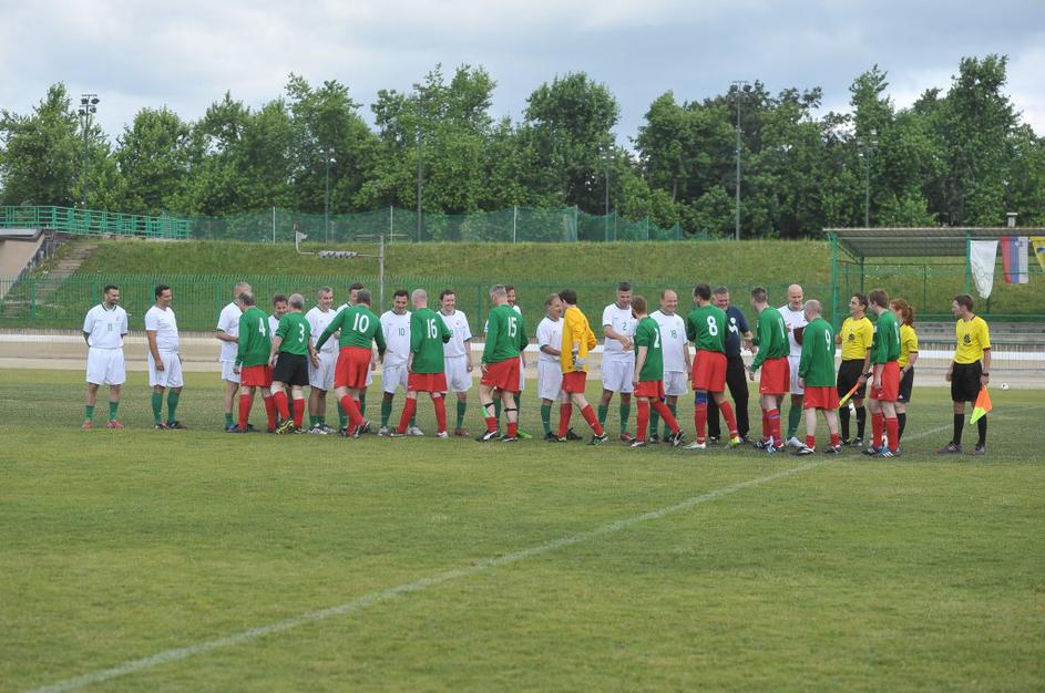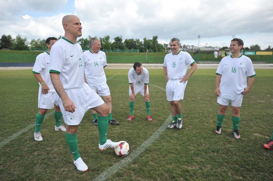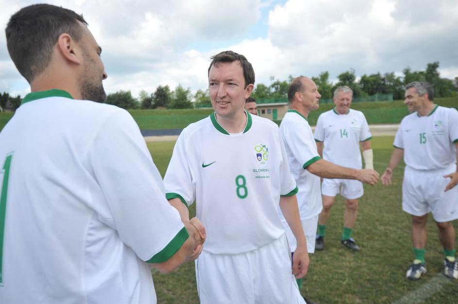 Slovenski in britanski poslanci so se pomerili na nogometnem igrišču Ilirija v Ljubljani.