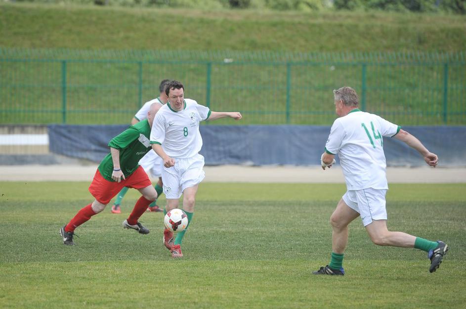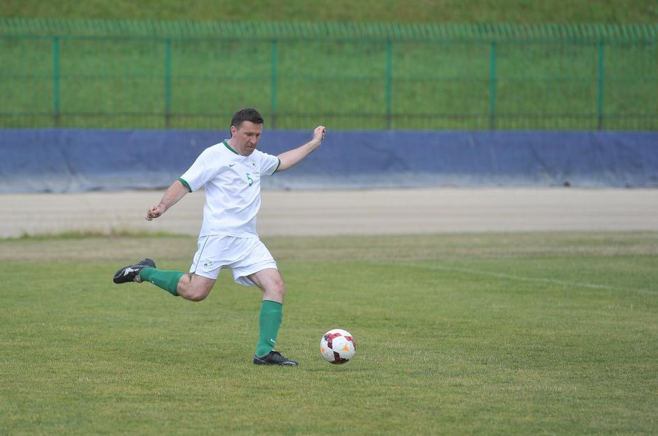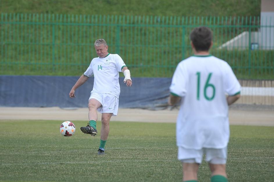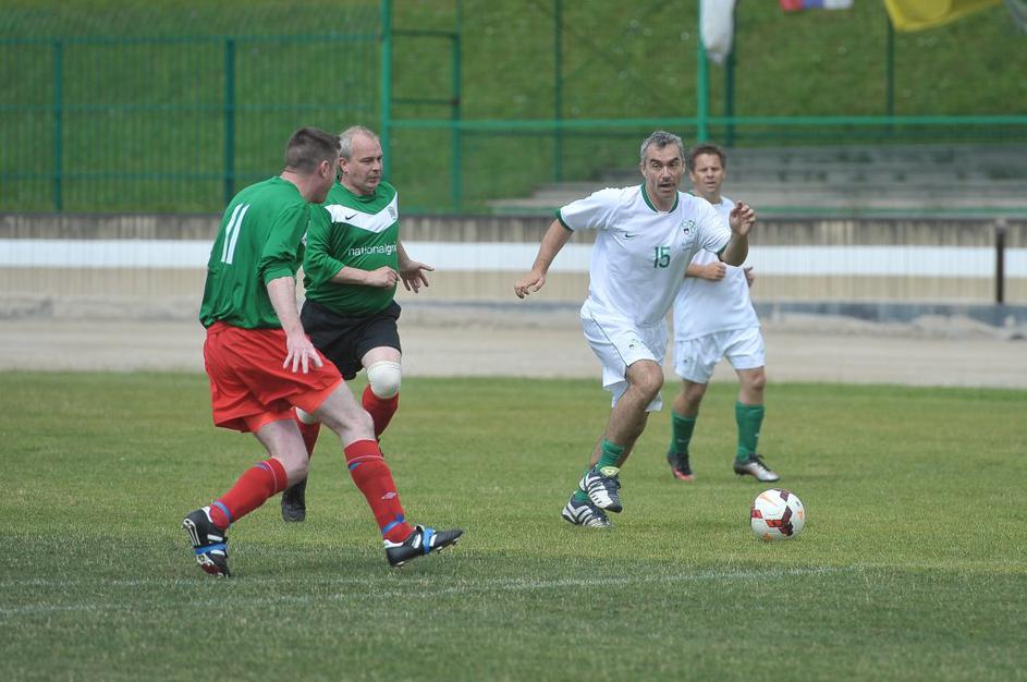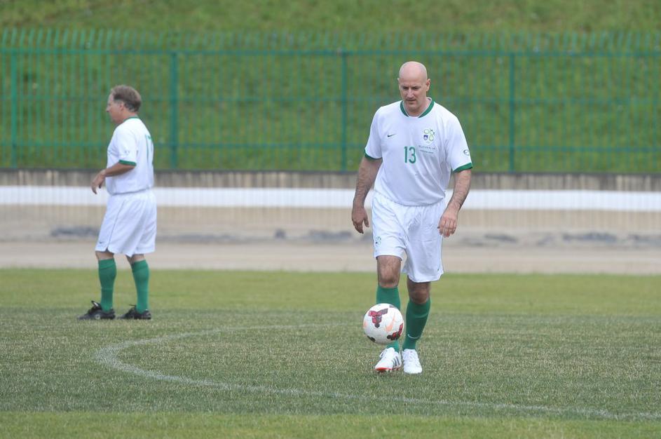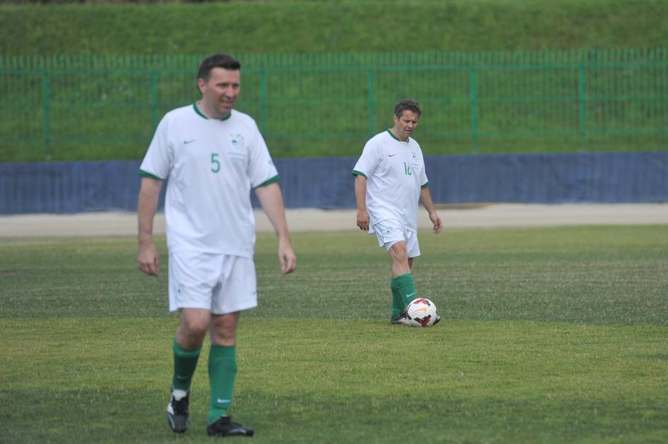 Slovenski in britanski poslanci so se pomerili na nogometnem igrišču Ilirija v Ljubljani.