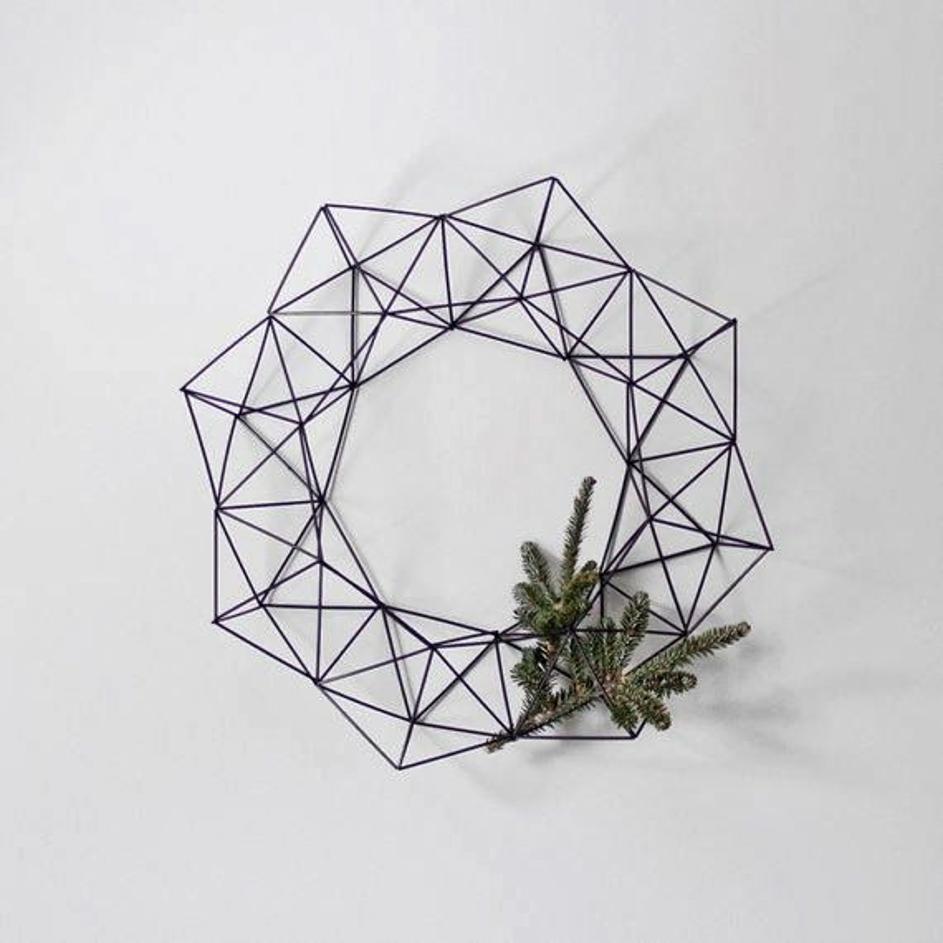 adventni venčekMinimalistični venček: Naredite kompleksno osnovo in jo okrasite z eno samo zeleno vejico. Izdelavo osnove si lahko olajšate tako, da drug vrh druge polagate osnovne oblike iz žice, v tem primeru so to kvadrati. (Kliknite na fotografijo za povečavo) Žurnal24