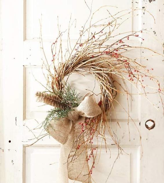 adventni venčekNaravni venček: Namesto tradicioanlnih iglavcev uporabite posušene veje, ki jih mestoma pustite, da se izvijejo iz oblike. (Kliknite na fotografijo za povečavo) Žurnal24