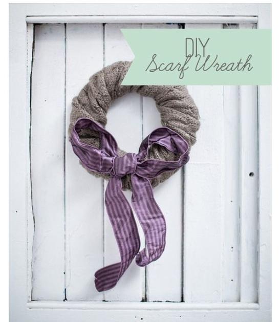 adventni venčekVenček iz šala: dolg in mehek star šal ovijte okoli osnove. Okrasite z dodatki. (Kliknite na fotografijo za povečavo) Žurnal24