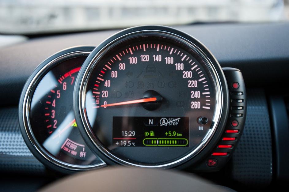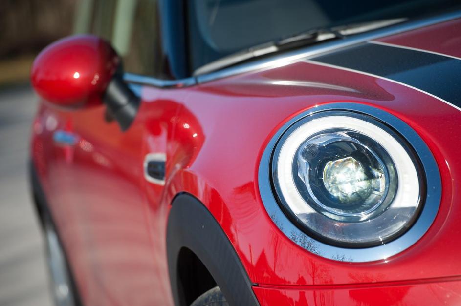 Za odlične na testu so se izkazali led žarometi, stanejo 1.000 evrov. Zadnji žarometi so bili z vsako generacijo večji in so sedaj že zares velikanski. Je pa zaradi njih mini ohranil svoj kultni imidž. Anže Petkovšek