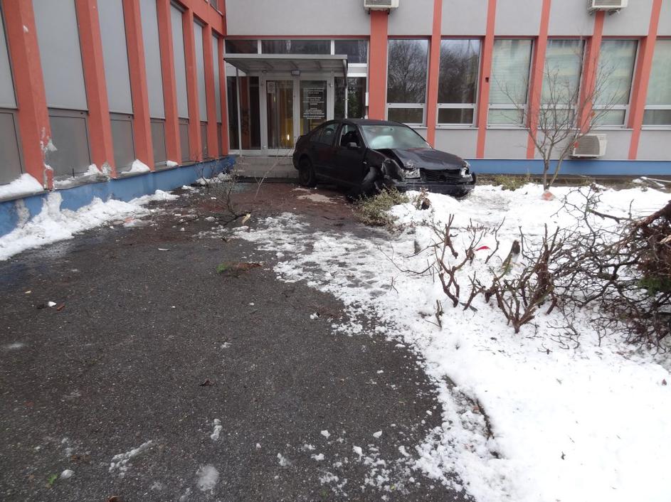 Vinjen mladoletnik z avtomobilom v stavbo mariborskih gasilcev