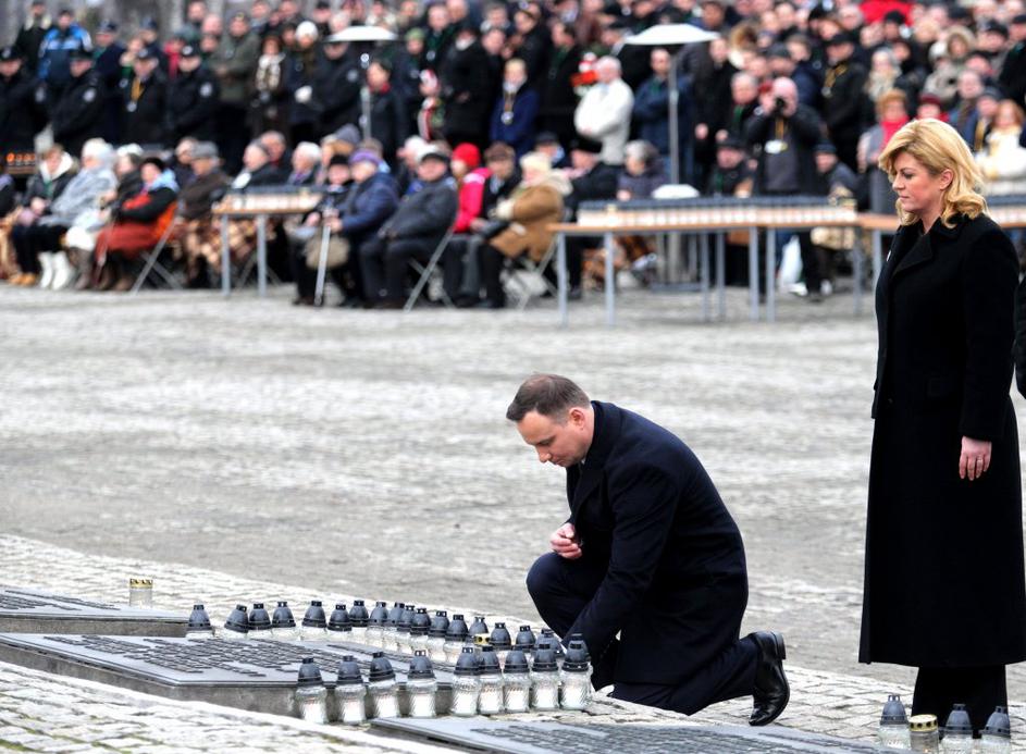 Pred obračunom se je s poljskim kolegom Andrzejem Dudo poklonila žrtvam v Auschwitzu.