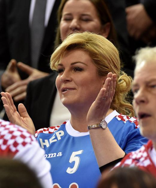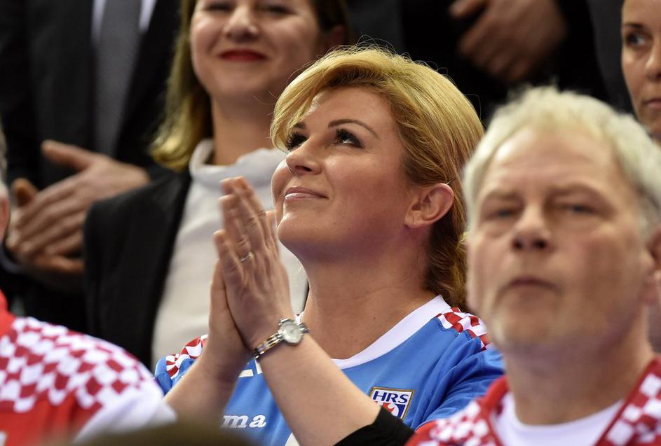 Hrvaška predsednica se je po tekmi spustila na parket in čestitala igralcem.