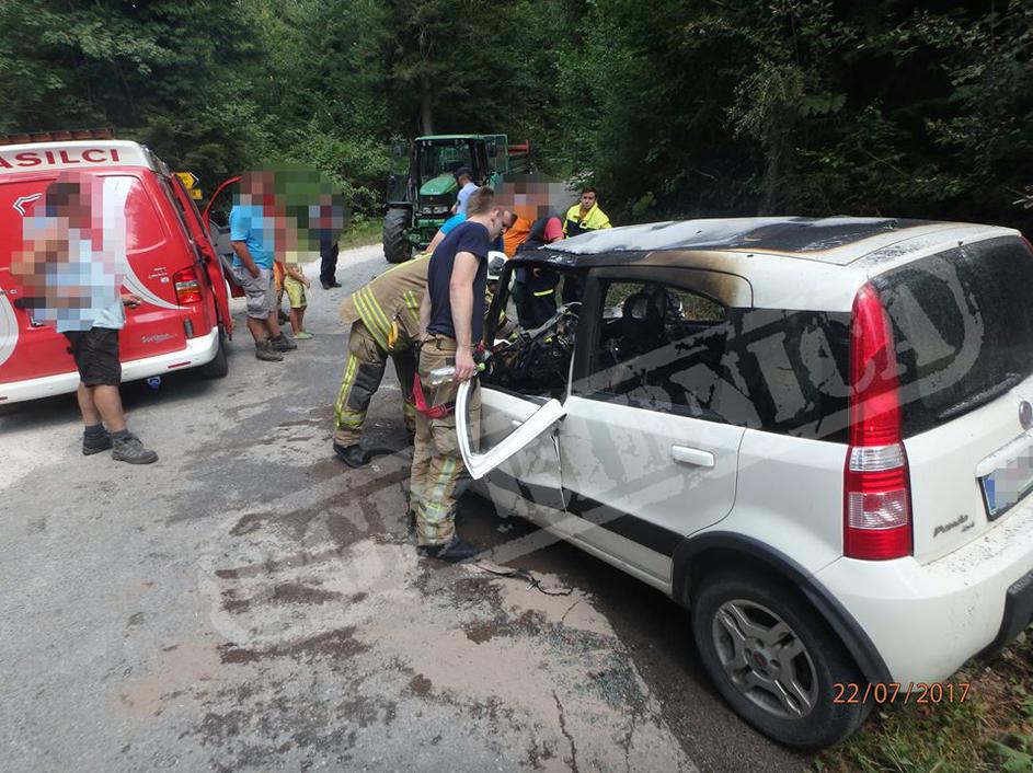 Traktorist ukleščenega voznika rešil iz gorečega avta