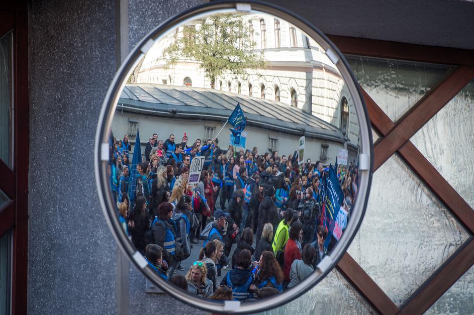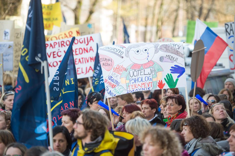 Stavka sindikata vzgoje in izobraževanja SVIZ pred vlado.