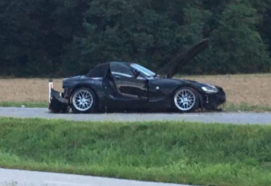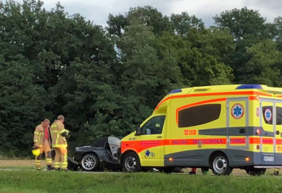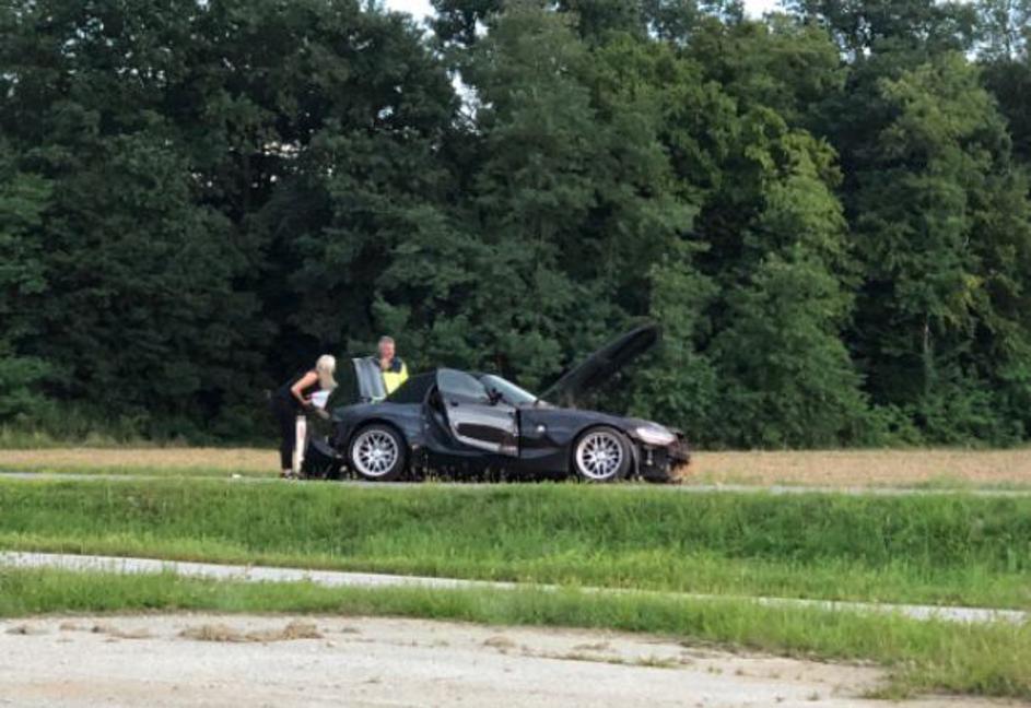 S športnim BMW-jem zletel s ceste, avtu odtrgalo kolo