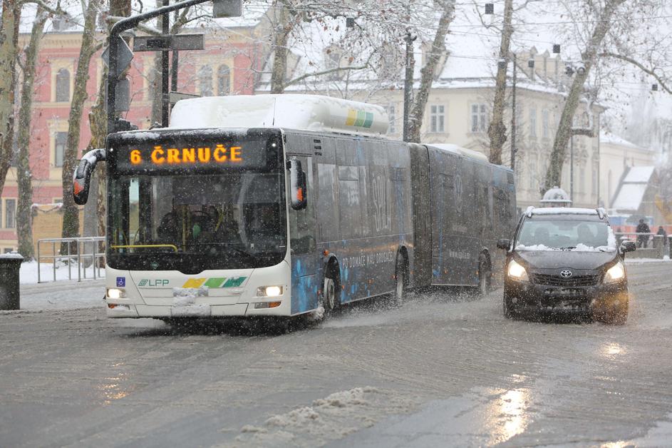 Preglavice zaradi snega, tovornjaki ustavili promet