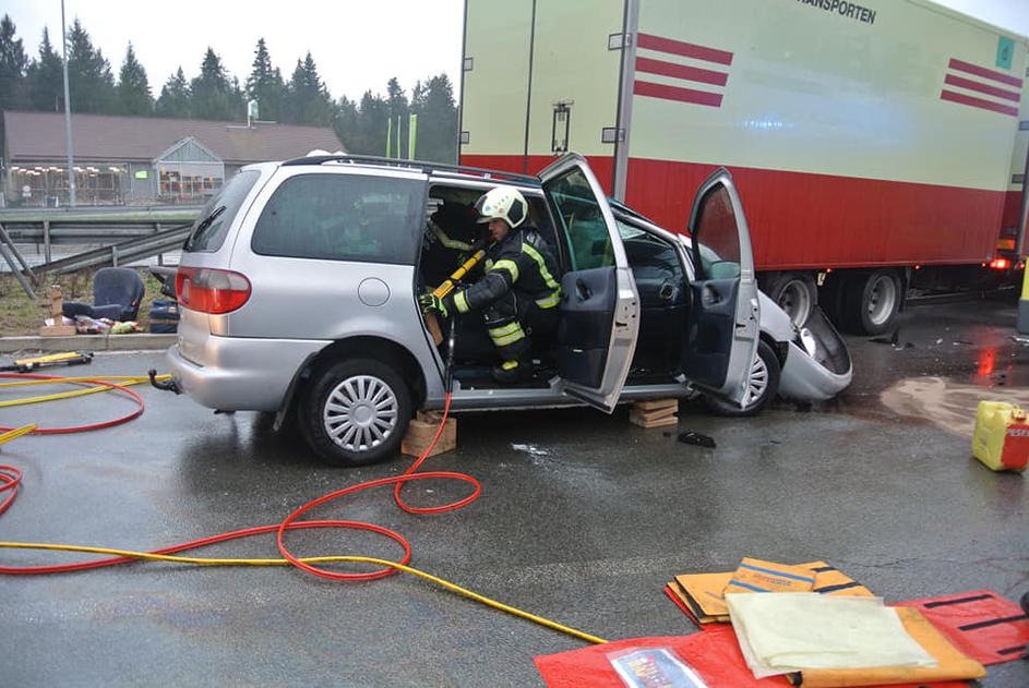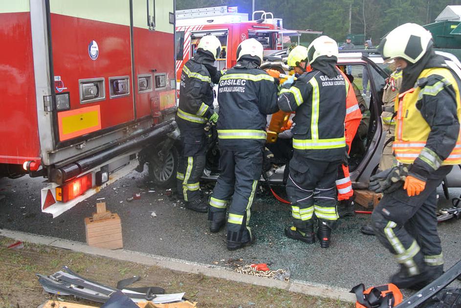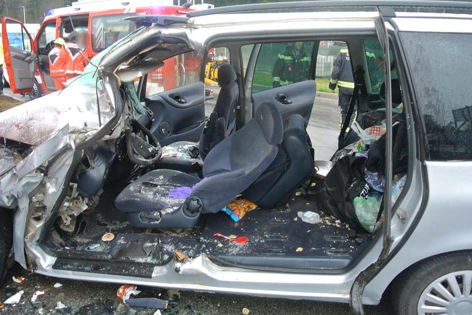 Huda nesreča, osebno vozilo trčilo v tovornjak