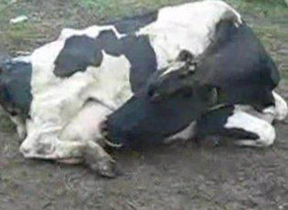 Krava pije svoje mleko