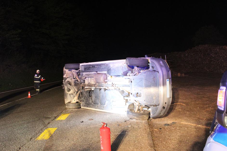 Prometna nesreča, prevrnjen avtomobil
