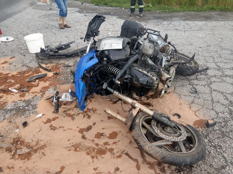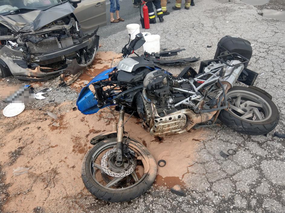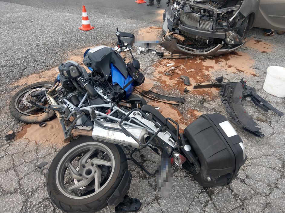 Prometna nesreča, trčenje avtomobila in motorista