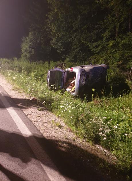 Prometna nesreča pri Rogaški Slatini, avto na boku