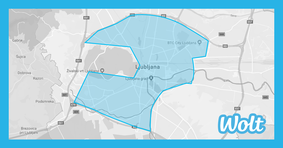 Wolt Trenutno dostavno območje Wolt znotraj ljubljanske obvoznice. / Wolt Wolt