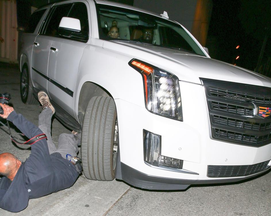Jennifer Lopez in Alex Rodriguez sta fotografa zbila z avtomobilom.
