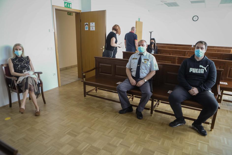 Julija Adlešič in Sebastien Abramov na okrožnem sodišču v Ljubljani na kazenski ovadbi.