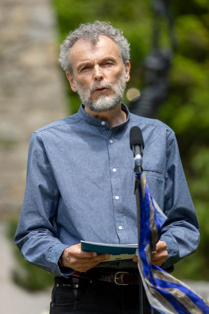 Dr. Dragan Petrovec, slavnostni govornik pred spomenikom Obtožujem! pod Ljubeljem
