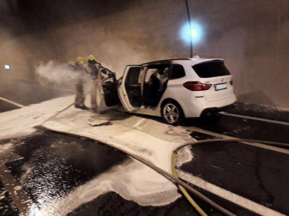 Požar avta v predoru Šentvid