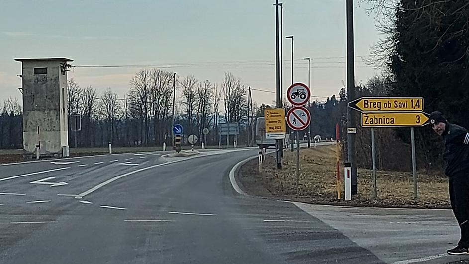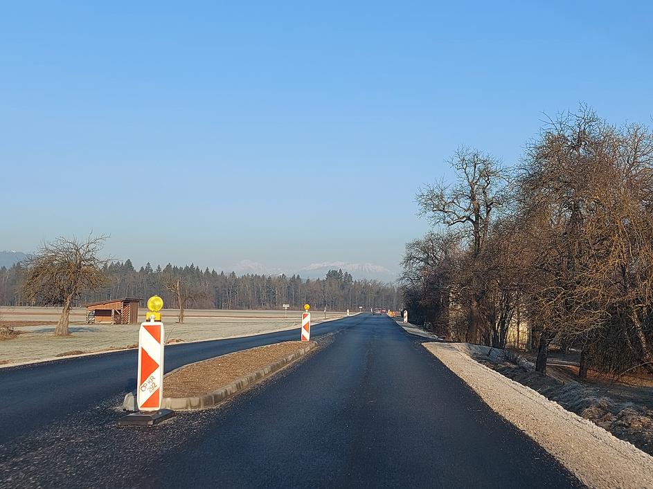 Regionalna cesta Kranj-Medvode, na fotografiji je vozišče ob naselju Meja.