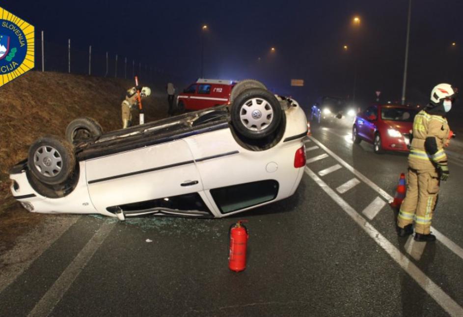 Med umikanjem temnemu vozilu se je prevrnil