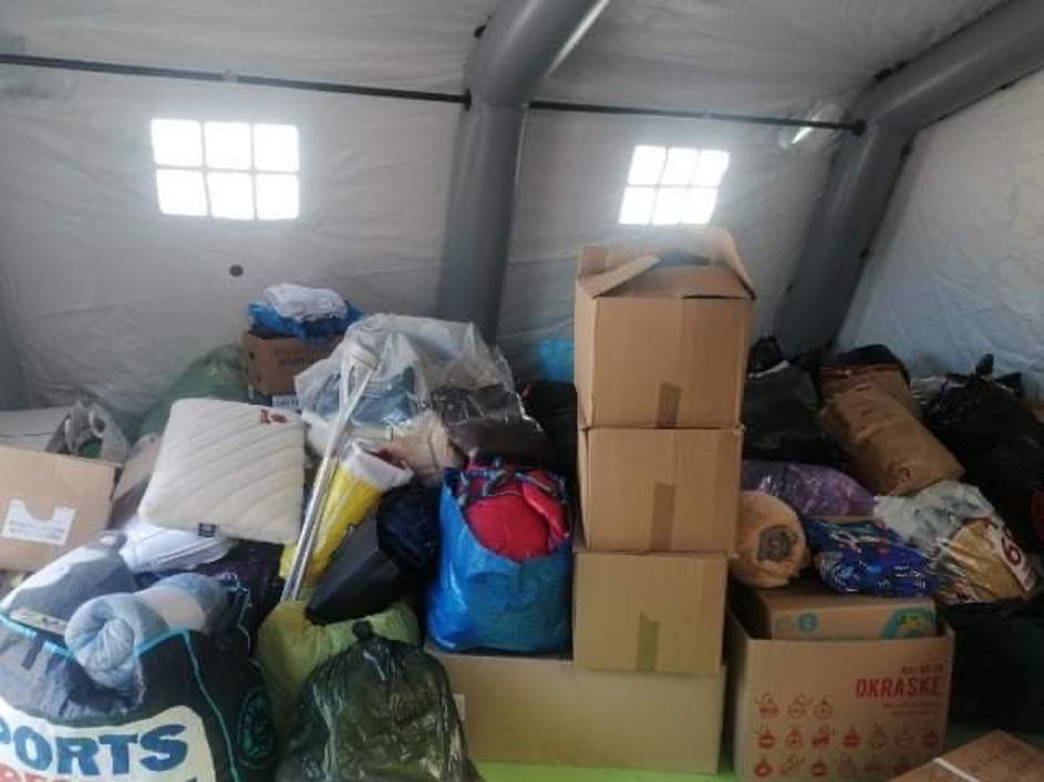Potrebščine zbirajo v treh šotorih na parkirišču pred Vojašnico Petra Petriča Kranj.
