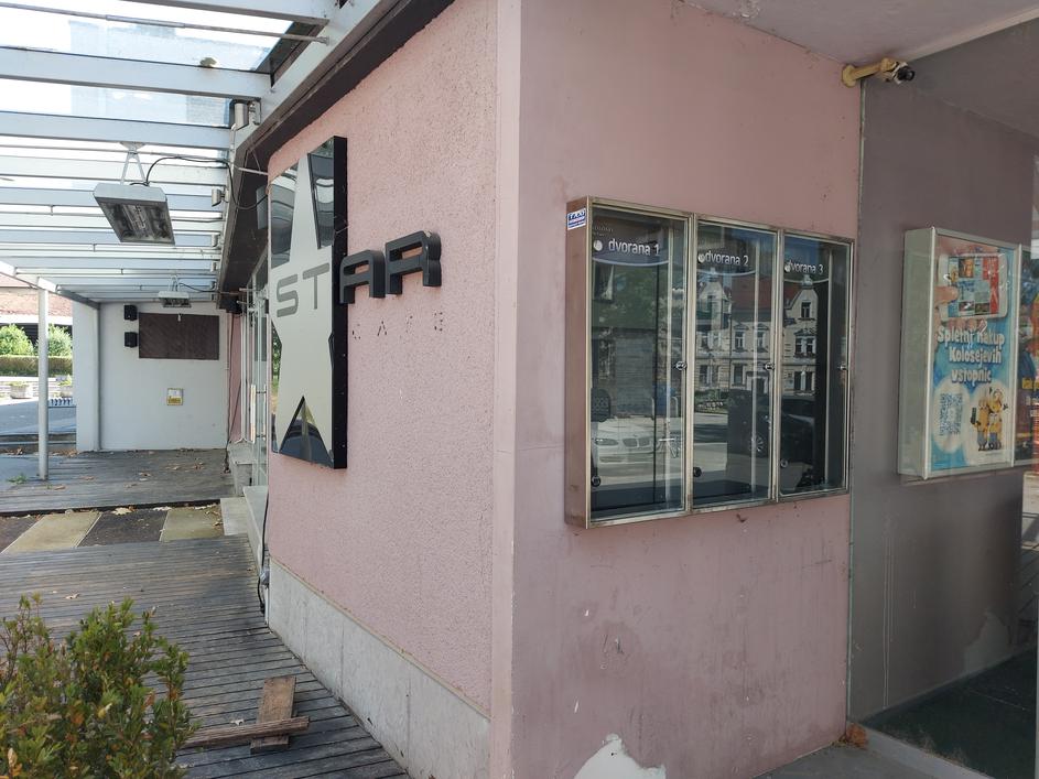 Obvestilo pred vhodom v kranjski mestni kino.