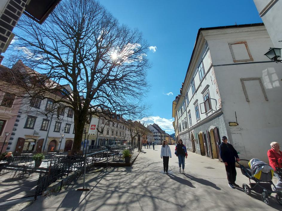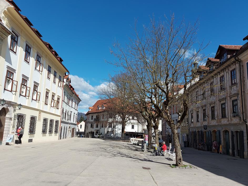 Škofja Loka, Mestni trg, posneto julij 2022