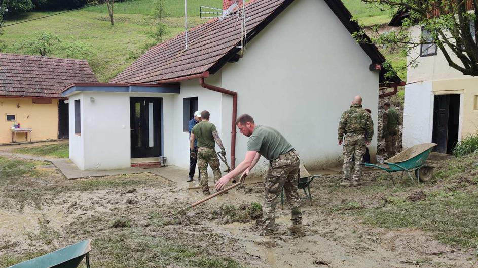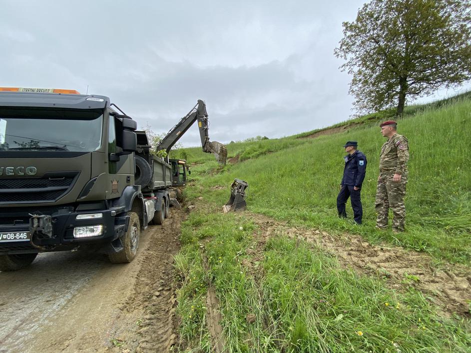 pripadniki Slovenske vojske pomagajo pri odstranjevanju posledic plazov