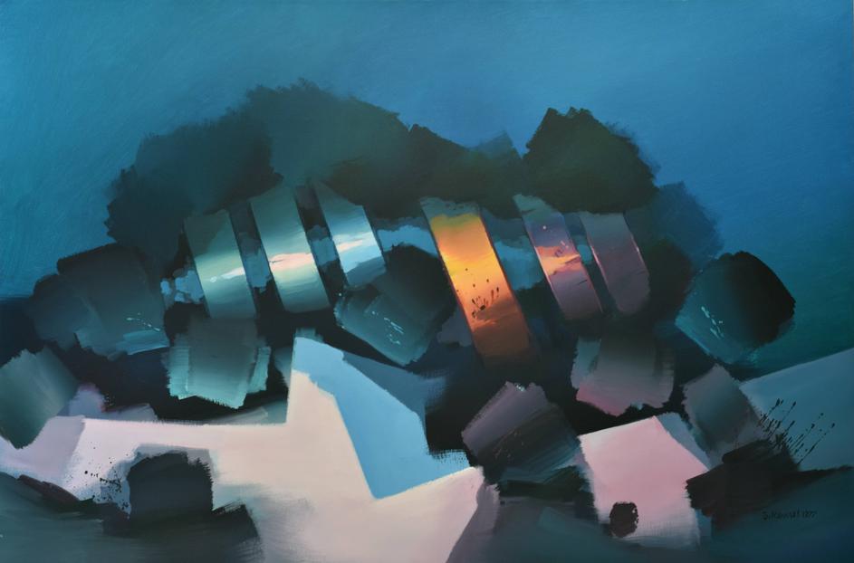 Silvester Komel, Izziv k novemu, akril in olje na platnu, 100 x 150 cm