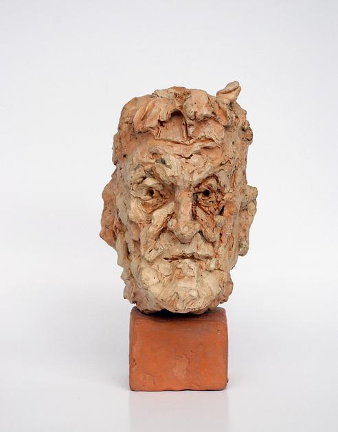 Drago Tršar, kip Rudija Šelige, 2003, žgana glina, 30 x 16 x 18 cm.